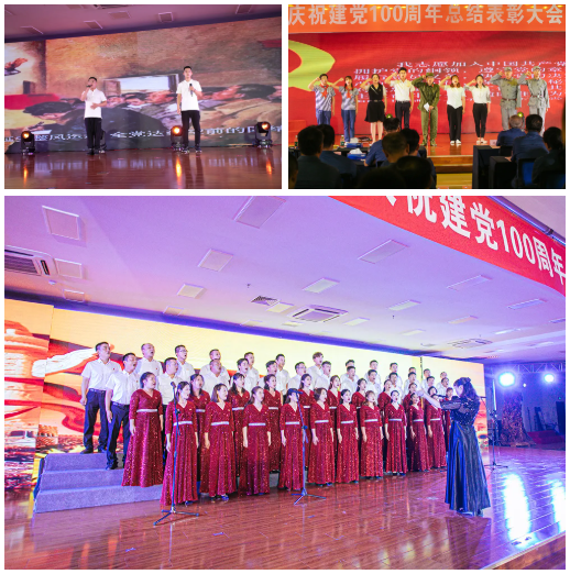 在慶祝建黨100周年文藝匯演階段,公司各級黨組織用精心編排和深情演繹的舞蹈、歌曲、情景劇、大合唱等多種藝術形式,追憶崢嶸歲月,禮贊光輝黨史,激勵廣大黨員干部職工感黨恩、聽黨話、跟黨走,營造出愛黨愛國愛企的濃郁氛圍。壓軸節(jié)目大合唱《在燦爛陽光下》《我宣誓》,由五十名來自公司各基層黨組織的普通黨員,克服生產(chǎn)任務重、演出時間緊等困難,加班加點,歷時一個多月編排完成。氣勢磅礴、震撼人心的精彩演繹更是將文藝匯演推向高潮。