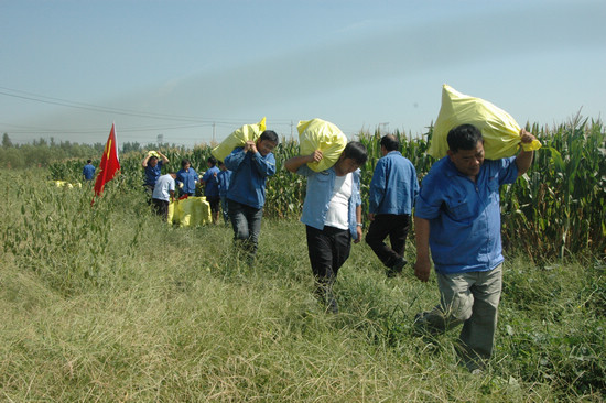 盡管在經(jīng)過一來二去的幾個回合之后,大家很快就是汗流浹背,猶如水洗一般,但是看著手里袋子中的玉米數(shù)量在不斷地增加,每個人都流露出滿意的笑容。因為,我們都認(rèn)為,成熟是美麗的,這是對辛勤勞作的人們的最高獎賞!所以,經(jīng)過近兩個小時的緊張忙碌,我們也收獲到了勞動的喜悅感和成就感。一袋、兩袋、三袋……數(shù)來數(shù)去足足有五十袋之多??粗@一個個顆粒飽滿的玉米棒子,我們才真正體會到 “誰知盤中餐,粒粒皆辛苦”的深刻意境,而在看著不遠(yuǎn)處正在逐步變得清晰明朗的滿莊新區(qū)建設(shè)情景后,我們也由衷體會到公司領(lǐng)導(dǎo)的運籌帷幄和廣大員工的無私奉獻(xiàn)精神,也正是兩者的有機(jī)結(jié)合,泰山玻纖才能實現(xiàn)了更大發(fā)展!