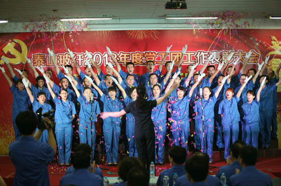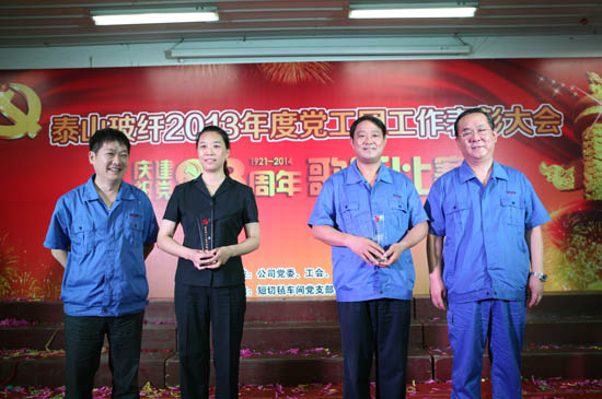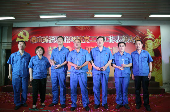 7月1日,泰山玻纖2013年度黨工團工作表彰大會暨慶祝建黨93周年歌詠比賽在公司培訓(xùn)教室隆重舉行。公司黨委委員、領(lǐng)導(dǎo)班子成員、中層以上管理人員以及來自各基層黨、工、團組織的代表共計300余人匯聚一堂,共同慶賀中國共產(chǎn)黨93華誕。