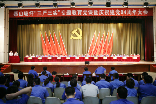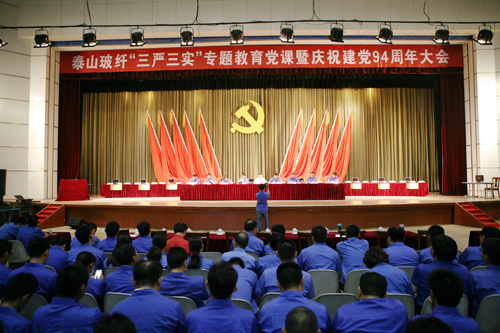 6月19日,泰山玻纖舉辦“三嚴(yán)三實(shí)”專題教育黨課暨慶祝建黨94周年大會(huì)。會(huì)上,中材股份副總裁、泰山玻纖黨委書記蘇逵以《踐行“三嚴(yán)三實(shí)” 打造優(yōu)秀領(lǐng)導(dǎo)團(tuán)隊(duì) 建設(shè)最具競爭力企業(yè)》為題,講授了“三嚴(yán)三實(shí)”專題教育黨課。會(huì)議由黨委副書記、紀(jì)委書記李成泉主持,公司董事長、總經(jīng)理唐志堯等全體黨政領(lǐng)導(dǎo)班子出席會(huì)議,公司全體黨員、主管以上管理人員共計(jì)400余人參加會(huì)議。