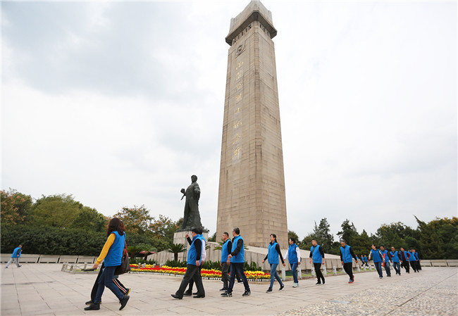在參觀完南京大屠殺遇難同胞紀(jì)念館后,大家懷著無比崇敬的心情來到了雨花臺(tái)烈士陵園。莊嚴(yán)肅穆的雨花臺(tái)山岡,烈士紀(jì)念碑巍然聳立,“寧死不屈”的革命烈士塑像巋然屹立,用數(shù)萬盆鮮花鋪就的“信仰”兩個(gè)大字格外醒目。