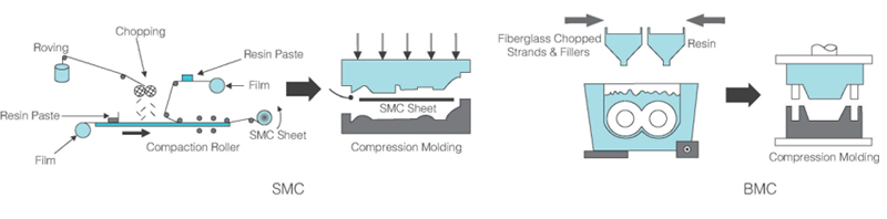 Compression molding products include SMC(Sheet Molding Compound) and BMC(Bulk Molding Compound).