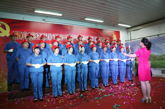 歌詠比賽精彩紛呈,來自公司9個基層黨組織的8支參賽隊伍克服了時間緊、生產(chǎn)任務(wù)重的困難,以熱情飽滿、奮發(fā)向上的的精神,發(fā)自肺腑、鏗鏘有力的歌聲,唱響了鐵錘和鐮刀的頌歌!各參賽代表隊各自使出渾身解數(shù)及看家本領(lǐng),在舞臺上一展風(fēng)采。參賽隊伍整齊劃一、朗誦選手聲情并茂、各參賽隊的嘹亮歌聲響徹在會場的上空經(jīng)久不息,叫好聲、鼓掌聲始終不斷,此起彼伏。《中國、中國、鮮紅的太陽永不落》、《保衛(wèi)黃河》、《歌唱祖國》、《走向復(fù)興》、《團結(jié)就是力量》等歌曲,唱出了廣大干部群眾對實現(xiàn)中華民族偉大復(fù)興和建設(shè)強大祖國的無限激情和信心;《映山紅》、《愛我中華》、《紅旗飄飄》、《共筑中國夢》等歌曲,表達(dá)了職工群眾對黨的無限熱愛,抒發(fā)了大家對祖國母親的一片赤子之情。比賽始終在一片催人奮進(jìn)、精神振奮、熱情洋溢的氛圍中進(jìn)行。最終,經(jīng)過激烈角逐,短切氈車間黨支部代表隊以其高亢的歌聲和磅礴的氣勢獲得一等獎和優(yōu)秀組織獎,機關(guān)一、二黨支部代表隊、一分廠黨支部代表隊獲得了二等獎,滿莊粗紗分廠黨支部代表隊、設(shè)動部黨支部代表隊、華泰公司代表隊和機關(guān)三黨支部代表隊榮獲三等獎,復(fù)材公司代表隊榮獲精神風(fēng)尚獎。